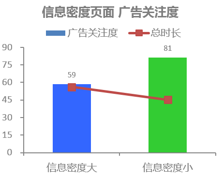 (4)通过眼动实验发现:拥挤的页面用户浏览所需时间长但对广告关注度小,宽松的页面用户浏览所需时间短但有更多精力可以放在广告上。所以,为了呈现更多信息增加广告数量而在网页铺满信息,并不能提高用户浏览广告的概率,反而由于任务量变大,而使用户心理上产生压力匆匆读完关闭页面。如下图所示: