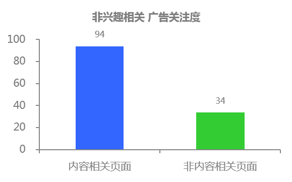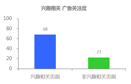 实验发现,当用户对广告内容感兴趣,将兴趣相关广告,投放至感兴趣的页面效果更好,即用户兴趣&广告内容&页面内容一致 ,广告最受关注。