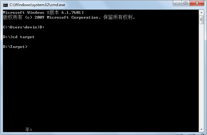 当然也可以使用相对路径,把DOS切换到D盘的Target,然后输入如下命令: