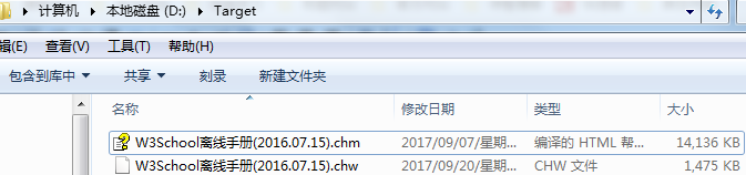 上述反编译的chm文件全路径名为:D:\Target\W3School离线手册(2016.07.15).chm