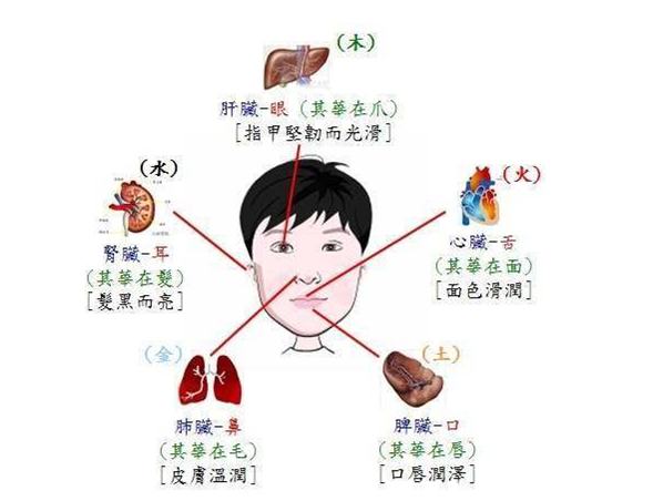 | 人 | 五窍 | 目 | 舌 | 口、人中 | 鼻 | 耳 | – |