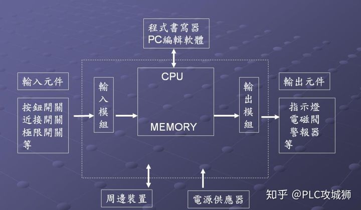一切的PLC由三个主要部分组成:输入,CPU和输出。