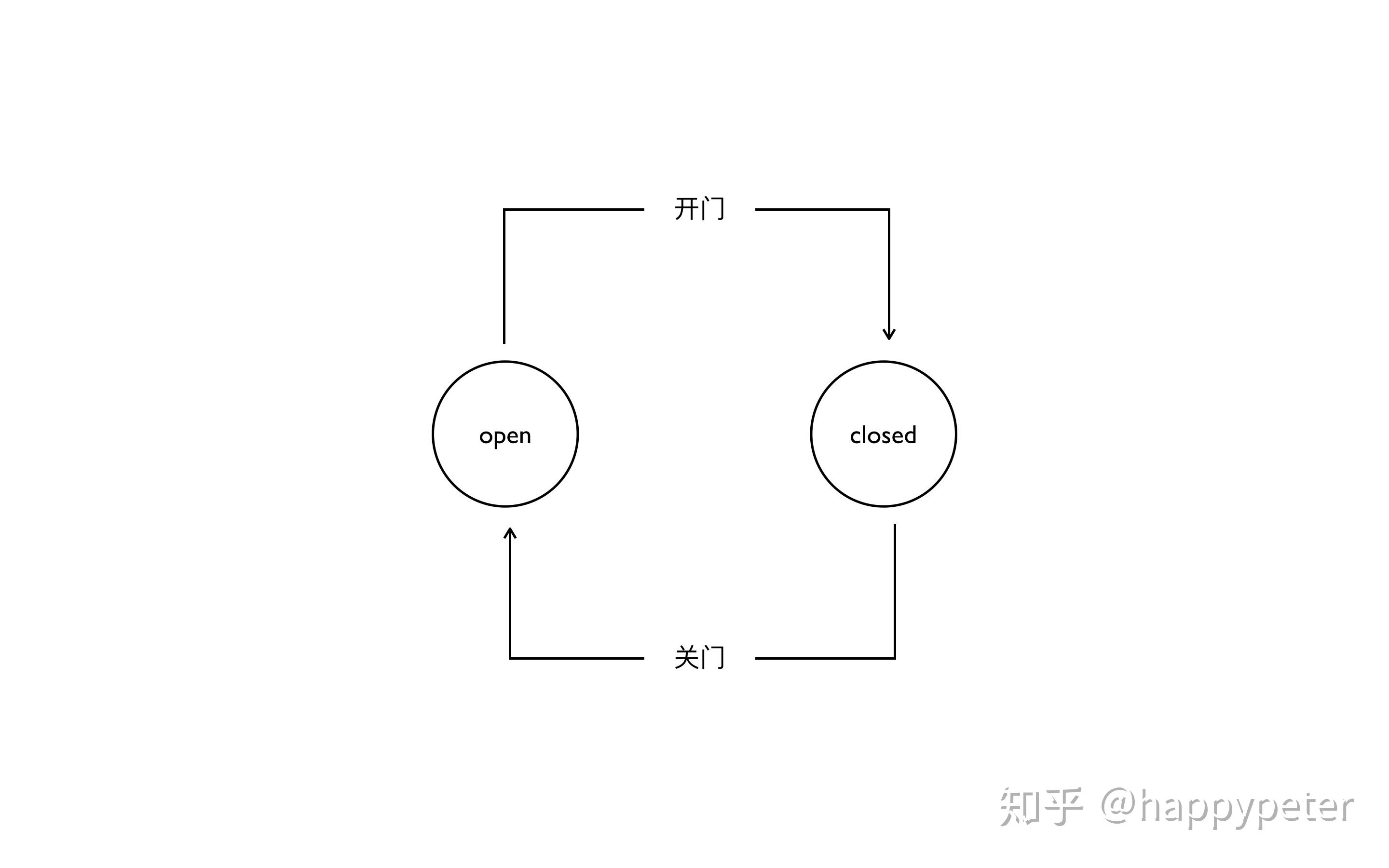 先来解释什么是“状态”( State )。现实事物是有不同状态的,例如一个自动门,就有 open 和 closed 两种状态。我们通常所说的状态机是有限状态机,也就是被描述的事物的状态的数量是有限个,例如自动门的状态就是两个 open 和 closed 。