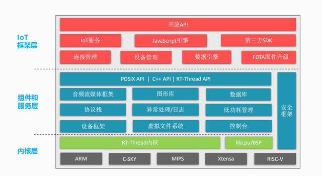 RT-Thread早在2006年就开始启动并发布了0.1.0内核版本,是一个集RTOS内核、中间件组件和开发者社区于一体的技术平台。RT-Thread也是一个组件完整丰富、高度可伸缩、简易开发、超低功耗、高安全性的物联网操作系统。总的来讲,RT-Thread具备一个IoT OS平台所需的所有关键组件,例如GUI、网络协议栈、安全传输、低功耗组件等等。