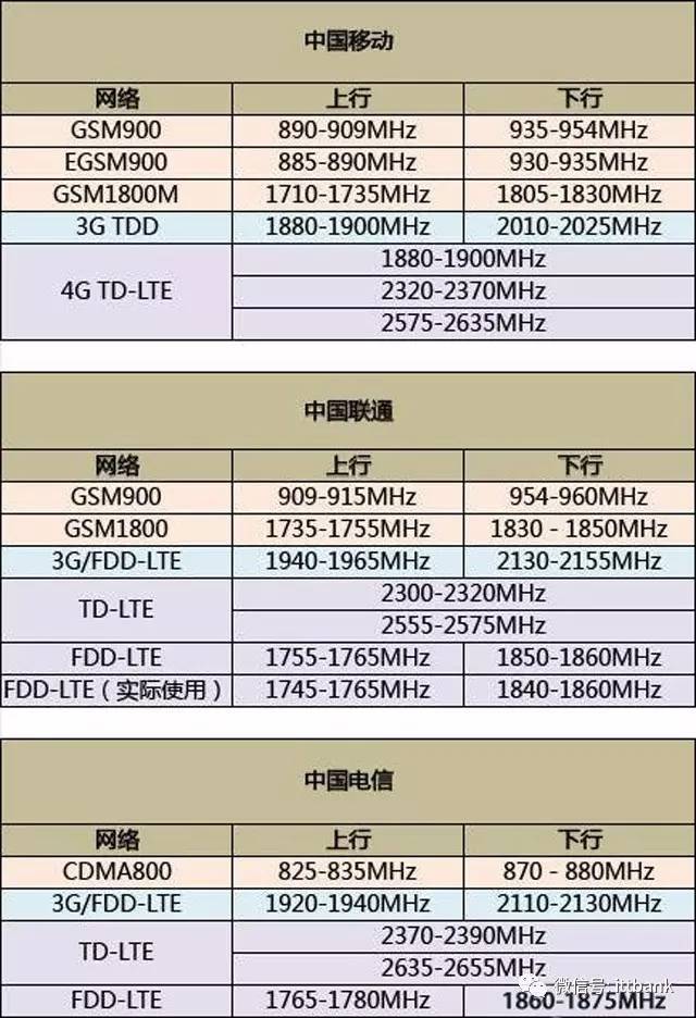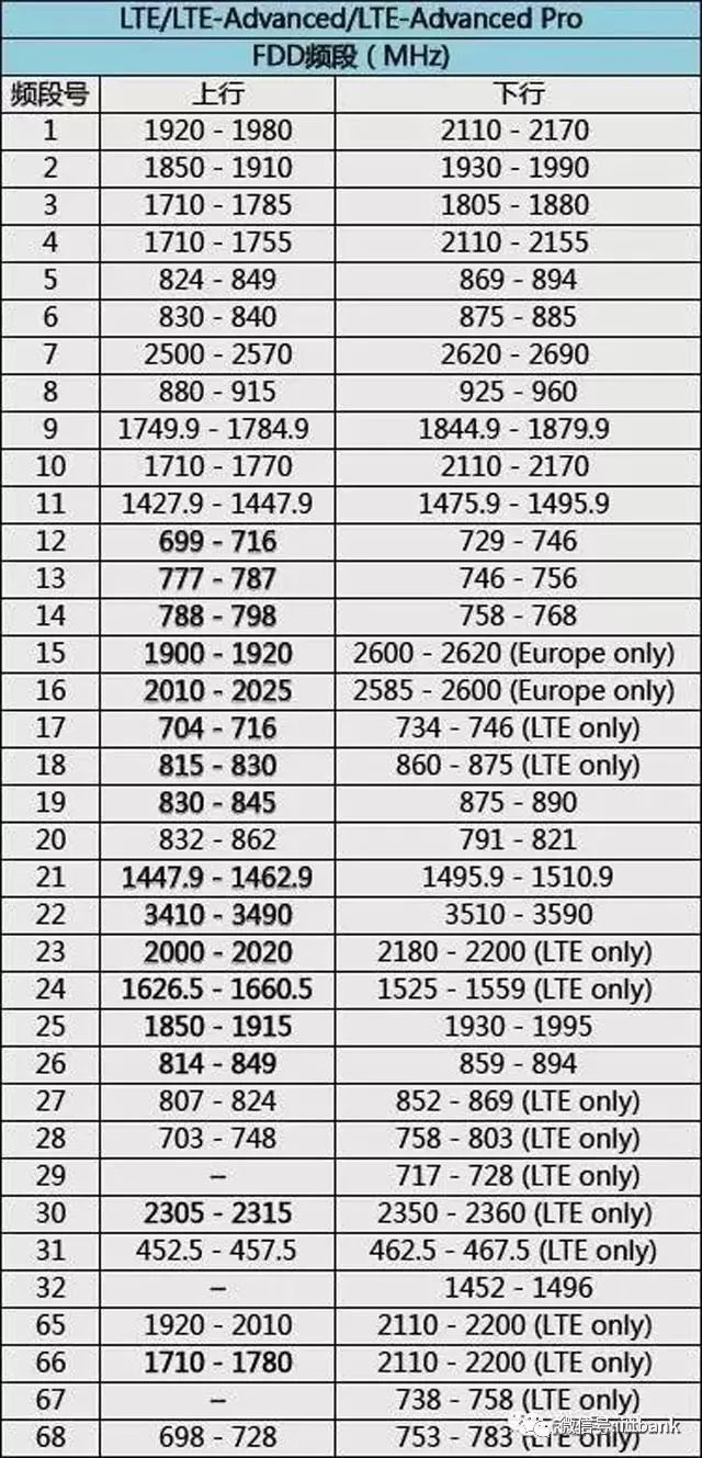 3)根据最近《工信部同意关于中国联通调整部分频率用于LTE组网的批复》,中国联通可以在原2G和WCDMA频段909-915/954-960,1735-1750/1830-1845,1940-1965/2130-2155上重耕LTE FDD来源:
