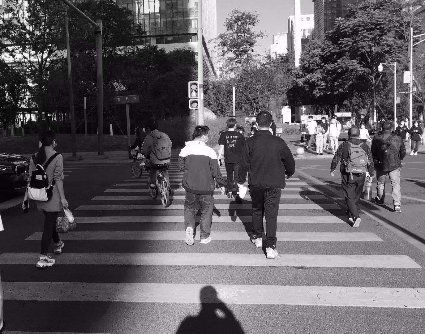谷雨之后的朝阳特别明媚,明暗的光影,流逝的时光,来往的行人,还有那举起手机的人影,千篇一律的路线,是否迷茫? 是否坚定?