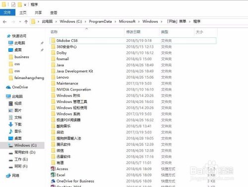 找到win10系统开始菜单常用软件的文件夹,C:\ProgramData\Microsoft\Windows\Start Menu\Programs,打开文件夹