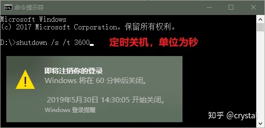 定时关机:shutdown /s /t 3600(3600 秒后关机)