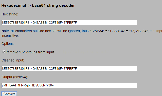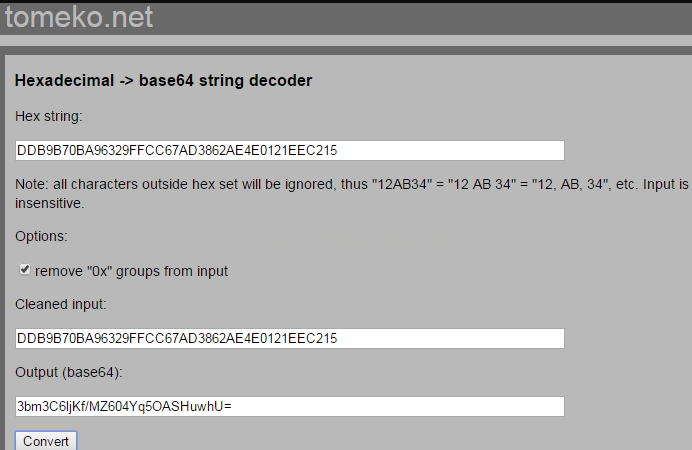 然后还有一个网站就是在线计算Base64:http://tomeko.net/online_tools/hex_to_base64.php?lang=en