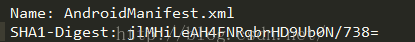 我们就来验证一下AndroidManifest.xml文件,首先在MANIFEST.MF文件中找到这个条目,记录SHA1的值