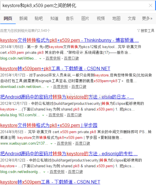 那么问题来了,jarsigner签名时用的是keystore文件,signapk签名时用的是pk8和x509.pem文件,而且都是给apk进行签名的,那么keystore文件和pk8,x509.pem他们之间是不是有什么联系呢?答案是肯定的,网上搜了一下,果然他们之间是可以转化的,这里就不在分析如何进行转化的,网上的例子貌似很多,有专门的的工具可以进行转化: