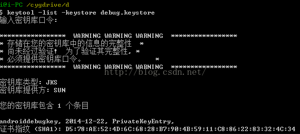 这个原因是因为在当前目录已经有debug.ketystore了,在生成一个debug.keystore的话,就会报错