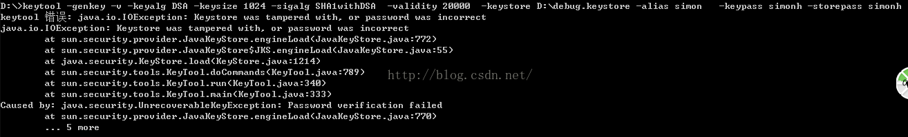这个是因为最后一个参数alias,是keystore的别名输错了。