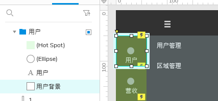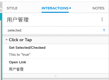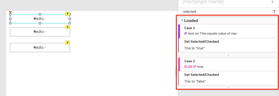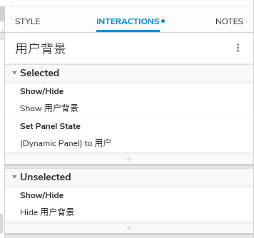 (3)通过一级导航“背景色块”选中状态改变事件,切换一级导航项目选中效果(背景色块变色)和二级导航动态面板的状态;