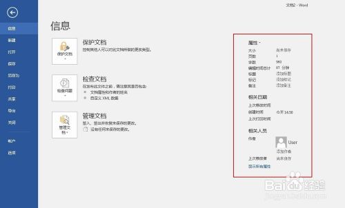 在默认的文档属性页面中,将显示文档作者、标题等信息。