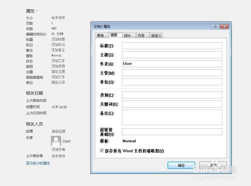 7在“高级属性”窗口中可以进一步编辑文档属性和查看统计信息。