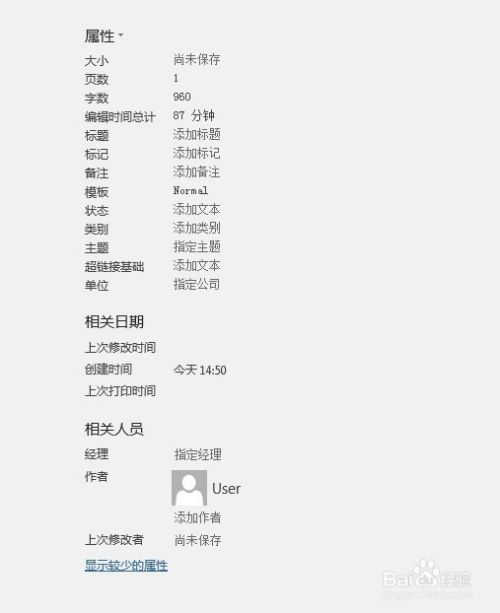 点击“显示所有属性”,可以查看和编辑文档的更多信息,比如公司、主题、类别等。
