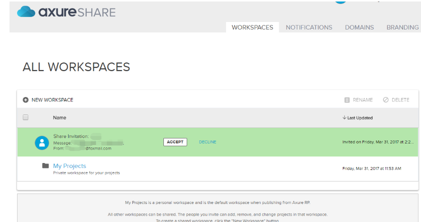 同事在收到团队协作邀请邮件后,登录 Axure share 接受邀请。