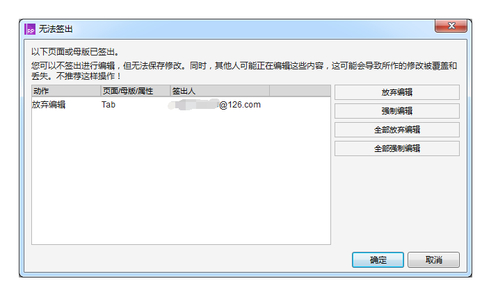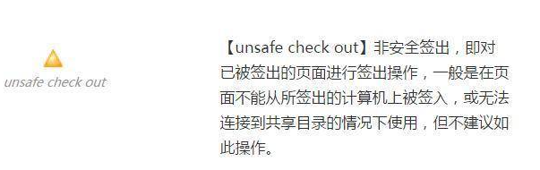 当选择一个页面签出时,它弹窗显示无法签出,表示此时有其它的小伙伴正在编辑这个页面。不建议强制编辑。