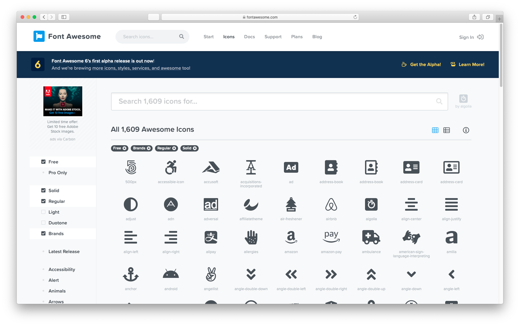 当前最新免费版本 5.15.1(Font Awesome 6 需要付费)