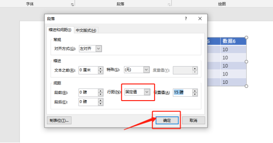 7、然后,我们在打开的段落设置框中,把【行距】选择为【固定值】,并在【设置值】中输入较小的数据。