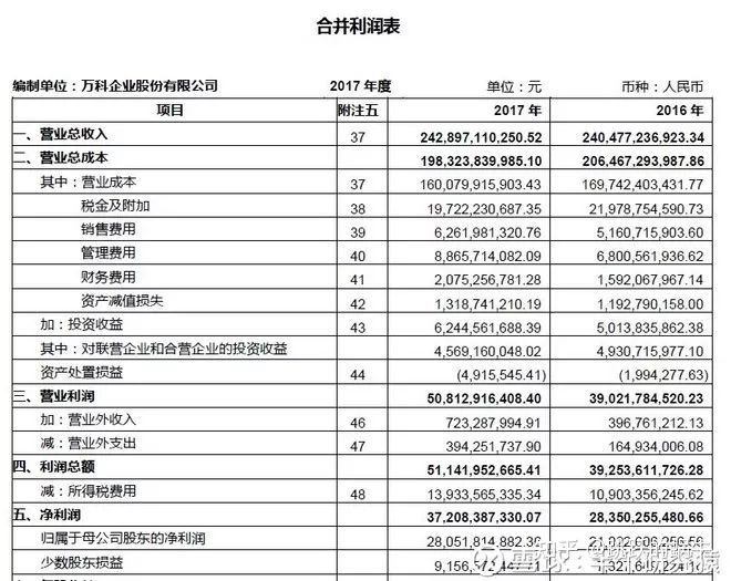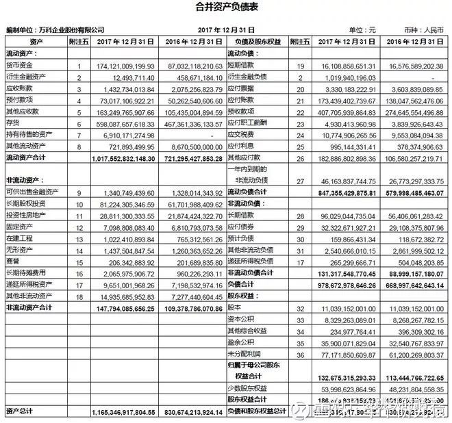 比如翻看万科17年年报的这部分,你会看到这样的内容: