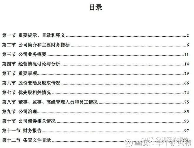 随便翻开一家上市公司的年报目录,大致可以知道你看年报可以获取到以下这些信息:公司的业务概要;(期乐会官方微信公众平台ID:qlhclub)公司的财务报表;公司的股东及高管情况;
