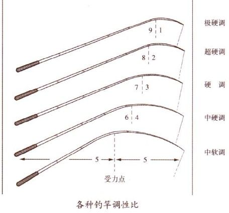 调性:通常台钓竿又分为软竿、中硬钓竿,硬钓竿、超硬钓、战斗竿四种,俗称五五、四六、三七、二八、一九,台钓中最常用的是超硬钓(二八竿)。如何判断调性呢?我们把新竿抽出,一个人拿竿尖,另一人拿竿把,然后稍用力抬竿,查看竿主要弯折点位置,如果折点至竿尖长度是竿全长的十分之二,那么,这竿就是超硬钓,也即二八竿,如此类推。超硬钓竿的提竿反映速度明显快,中鱼率高,上鱼方便,好控鱼,不会因竿软而难提上岸来。但是在垂钓小型鱼类时很多钓友喜欢用软竿,软竿钓小鱼也会有很好的手感,钓起来也比较舒服。