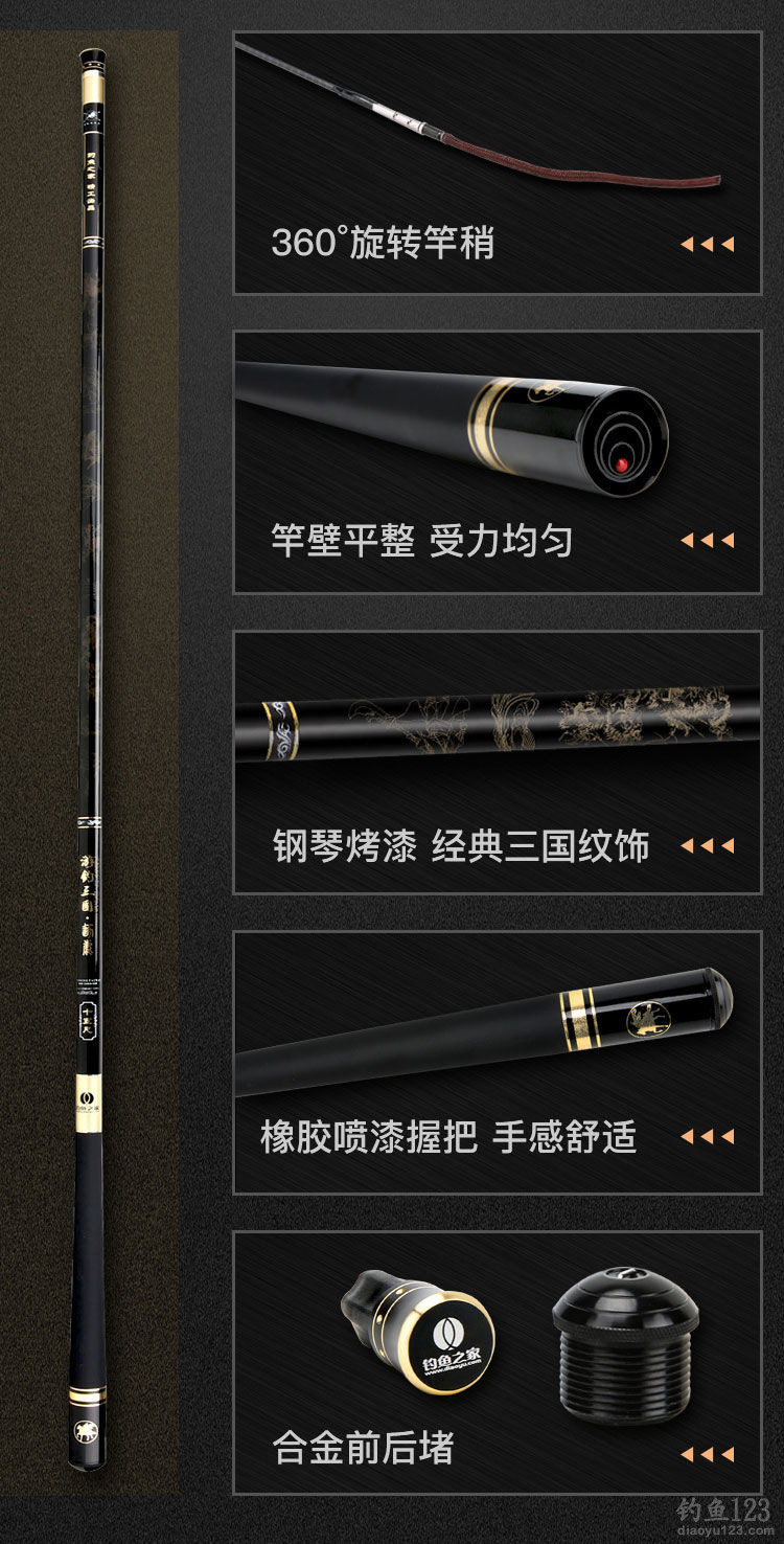现在网络购物越来越方便,很多初学钓鱼爱好者基本都是通过网络的方式来购买鱼竿,但是这里面存着一个问题,网购鱼竿是看不到实际产品的,好在国家工商总局公布了网购的退换货政策,七天之内无理由退货。即便如此大家在购买的时候也要注意一些问题。一是百分之八十以上的商家存在虚假宣传,主要在鱼竿的含碳量方面,现在网上搜一下很多商家的竿子都标的是60T、80T、甚至有的标到108T,超过60T含碳量的杆子一般的中小型厂家达不到这种生产工艺,更重要的一个方面就是超过60T的碳布,很多中小型厂家是进不到原材料的。网上的竿子含碳量一般在24T~40T之间,价格一般在100~500之间,这算是一个合理的区间,也足以应对平时的垂钓活动,如果含碳量标的很高,价格又很低,那这款竿子肯定有问题。二是鱼竿宣传方式存在问题,现在商家能想到的宣传方法基本都用上了,拉汽车、挑矿泉水瓶、踩不断等等,广大钓友仔细想一下,竿子是用来钓鱼的,又有哪位钓友买来鱼竿会亲自测一下到底能不能踩断,能挑几瓶矿泉水呢?这些宣传方式都存在一定的误导性和夸大性。现在鱼竿的质量越做越好,从轻便性和结实耐用程度方面来说比早期的鱼竿有了一个很大的提升,因此大家在选择鱼竿的时候只要看竿子的涂漆、做工、以及调性和手感、钓重等各方面细节都没什么问题,这就是一款不错的鱼竿。