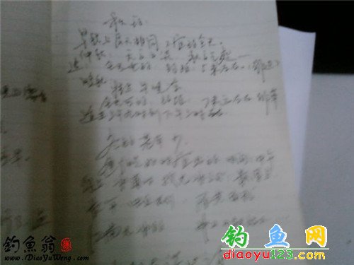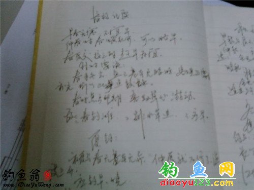天,渐渐地转冷,在家里闲着无事,就将家里的卫生打扫、打扫,把一些没有用的东西清除出门,准备干干净净迎接2011年的新春。无意中在阁楼上却意外地翻出来了一本父亲往日的日记。说是日记,倒不如说是他对春夏秋冬季节钓鱼技巧的总结。现整理其中的零零碎碎,发上来与朋友们一起切磋和学习: