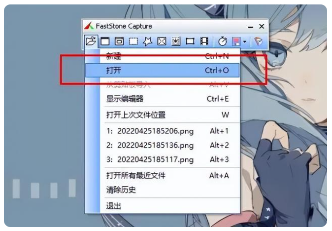 FastStone Capture (FSCapture) 还包括快速浏览/ 编辑图像的功能,可以点击主窗口的“ 打开” 图标快速打开一幅图片。