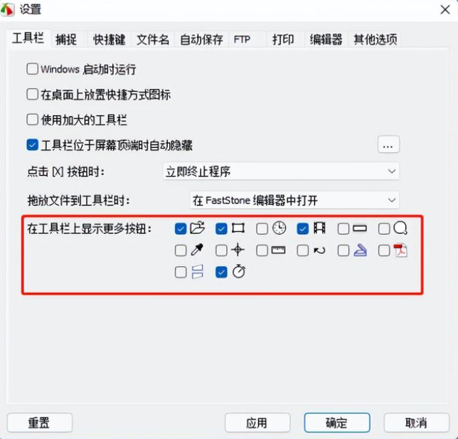 一般无需显示所有按钮,只需设置常用的几个即可。