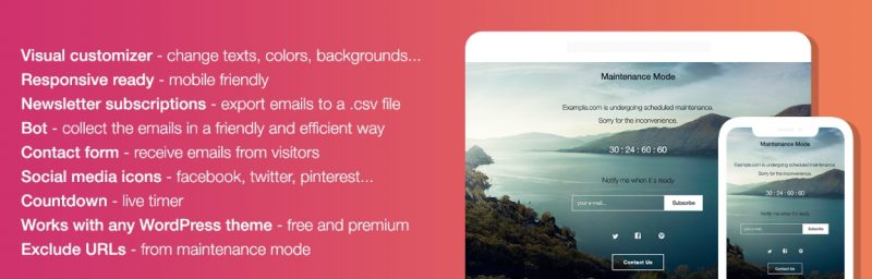 WP Maintenance Mode 是一款免费的WordPress维护模式插件,它提供了非常多实用的功能,让你可以用维护模式页面做很多事情