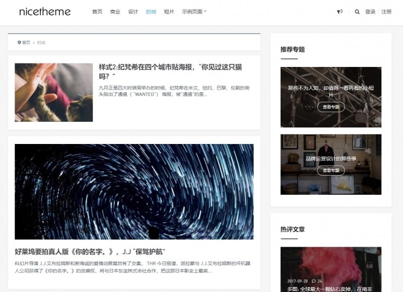 Grace主题是一款非常文艺的主题,这款主题本身设计的非常优秀,包含了多种配图展示效果。如果再能够配上好的图片,不管你是生活记录、好物分享、个人游记等等,都将会给人非常深刻的印象,另外该主题还自带的非常有特色的专题页面和人气排行页面,让你的网站更加多样