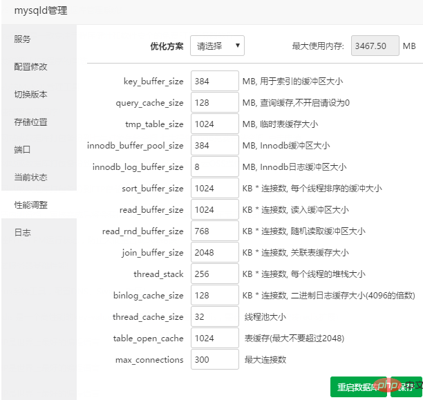 今天我们主要谈谈如果配合宝塔面板的新功能来进行MySQL配置参数调优,我们先来看两张图片: