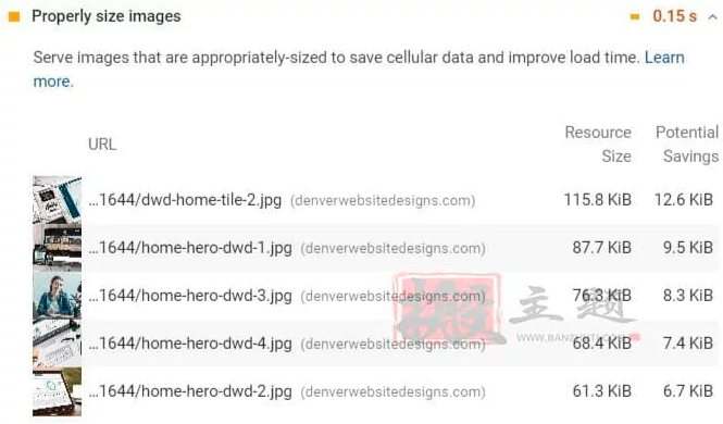 这通常是通过图像优化插件或你的图像编辑程序(Photoshop、GIMP等)完成的。Lighthouse对你的图像进行了85%的压缩,并与原始版本进行了比较。如果节省了4KiB或更多,Lighthouse将标记该图像。因此,如果你想通过这项建议,请将你的图像压缩级别设置为85%左右。