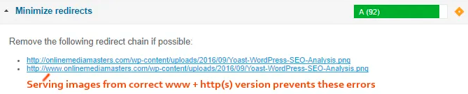 尽量减少重定向 – 从正确的www和http(s)版本提供图像。