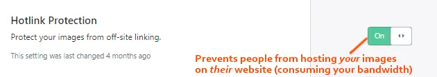 禁用热链可以防止人们复制/粘贴你的图片到他们的网站。如果他们这样做,图片仍然会被托管在你的服务器上,并消耗你的带宽。WP Rocket(禁用嵌入)、Cloudflare和许多主机都有禁用图像热链接的选项。