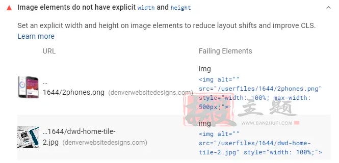 这是在GTmetrix传统报告中推荐的优化,但仍然有用。没有高度属性的图片会导致PageSpeed Insights中的CLS更高。视觉编辑器和大多数页面生成器会自动添加宽度/高度属性,所以你通常不需要担心这个问题。但在HTML/CSS中硬编码的图像需要手动完成。