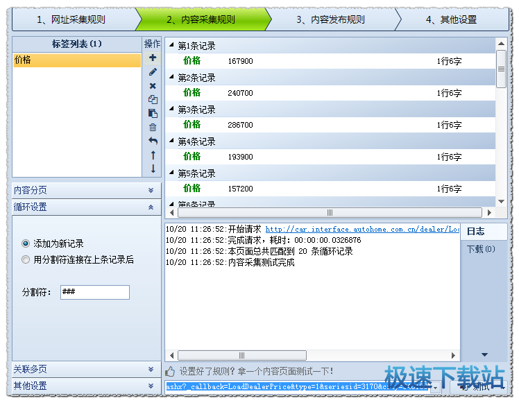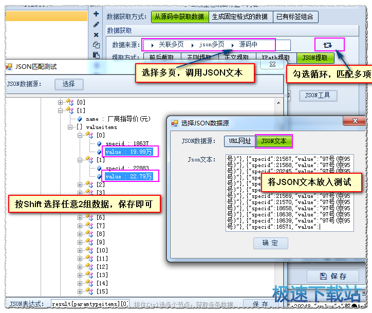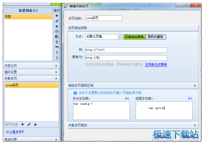 所以我们需要通过多页的形式,来获取本页地址里这部分JSON代码,然后在设置JSON表达式。