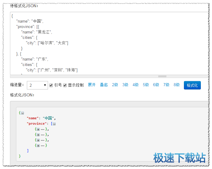 我们可以借助工具http://tool.oschina.net/codeformat/json测试是否是JSON,格式化后如图: