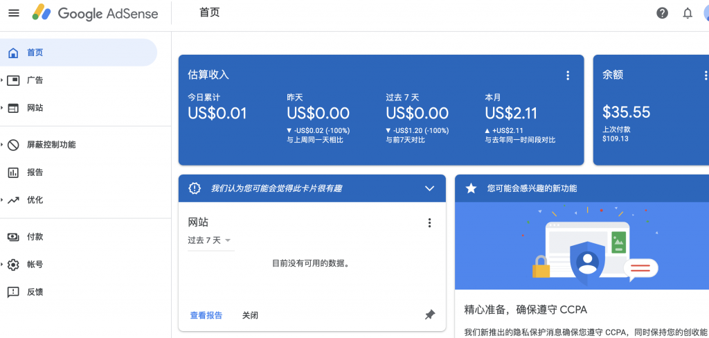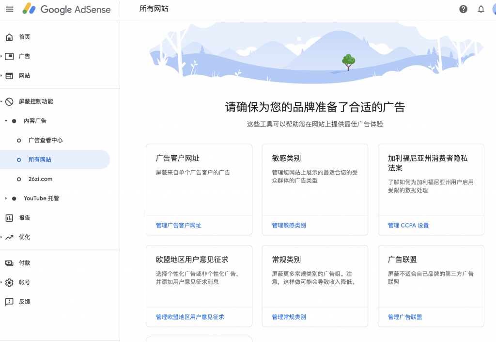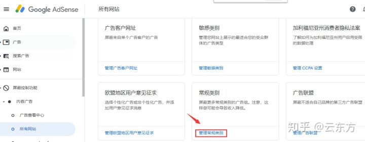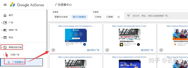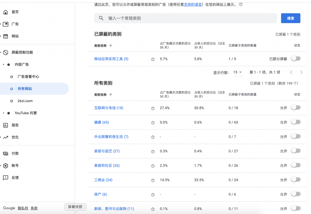 第一步打开Google Adsense后台,在左侧菜单中找到“屏蔽控制功能”
