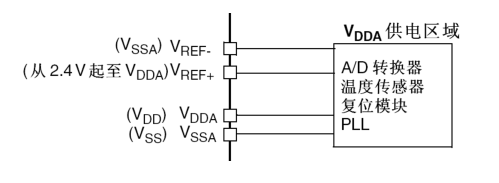 电源引脚VDD、VSS、VDDA、VSSA、VREF+、VREF-、VBAT