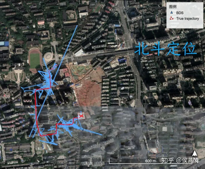 用国产的华为P30手机,导出了GPS和北斗的测量信号,自己用软件算了一下位置。图中红色线是真实的散步轨迹。