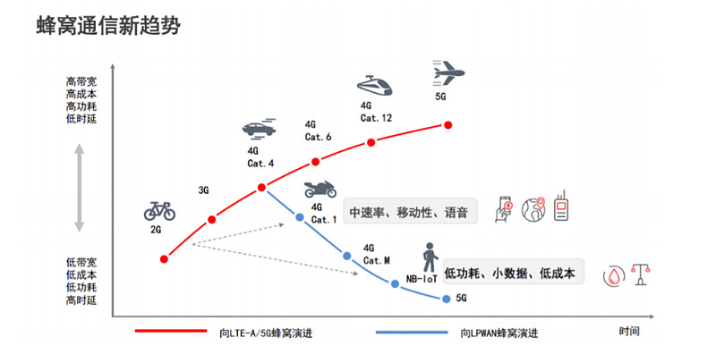 2020年5月,中国工信部发布了《关于深入推进移动物联网全面发展的通知》,明确表示2G、3G退网,NB-IoT和Cat.1协同承接2G/3G物联连接,提升频谱利用效率。至此,中国物联网市场,NB-IoT、Cat.1得以进一步借助政策力量加持。