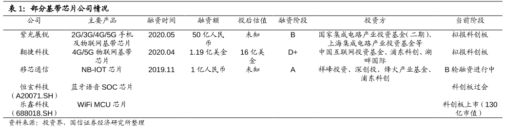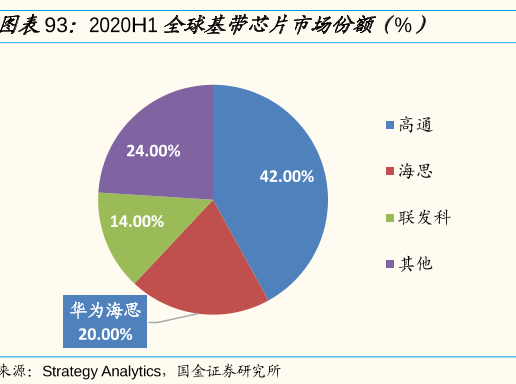 根据Statista的数据显示,2020 年全球基带芯片市场排名前三的公司分别是高通、海思半导体、联发科,在2020 年全球基带芯片的市场中,分别占据42%、20%、14%的市场份额,合计占据79%的市场份额。由此可见,基带芯片市场集中在少数的巨头手中。同时,Strategy Analytics 的分析数据显示,2020 年全球基带芯片总市场金额约为266亿美元。国内基带芯片公司主要有紫光展锐、翱捷科技、移芯通信、恒玄科技、乐鑫科技等