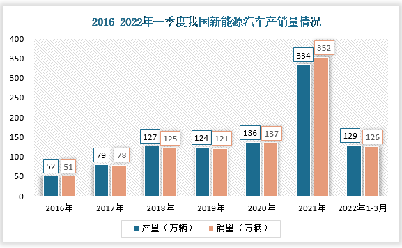 乘用车方面,则是新能源汽车产量的增长为北斗卫星导航芯片的需求增长提供动力。在汽车电动智能化浪潮下,我国新能源汽车高速发展。2021年年底我国新能源汽车产销量分别达到334万辆和352万辆,同比增速在140%和150%以上;2022年一季度,我国新能源汽车产销量已经分别达到129万辆和126万辆。新能源汽车产销量的增长为车用导航仪的带来了大量需求,也为我国北斗卫星导航芯片出货量的增长提供了动力。