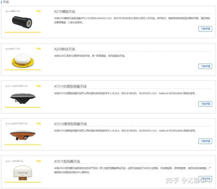 天线也是定位中重要的一个环节。根据是否需要供电分有源,无源天线。有源天线因为多一级LNA放大所以比无源天线效果更好。根据频段不同分单频/双频/多频天线。根据极化方向上分又分线性极化(手机上很多用这种),圆形极化(GPS信号是圆形极化的,我们用的陶瓷天线都是圆形极化的)等。还有根据形态和行业分类的比如四臂螺旋式天线(Quadrifilar Helix Antenna ),测量天线,扼流圈天线等。一般测绘用的天线性能是最好的。