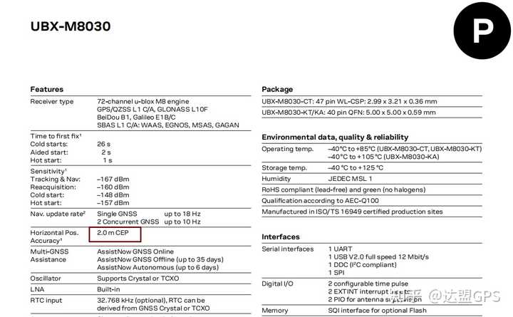定位芯片厂家主要就是ublox,MTK,中科微,泰斗,华大等厂家。GPS北斗定位芯片产品手册给出的定位精度一般是我们做出整机产品获得的最佳效果定位效果了。我们来看主流的单频定位芯片手册的数据:ublox的8030数据是CEP(50%的概率) 2米,中科微的AT6558也是2米(CEP)。