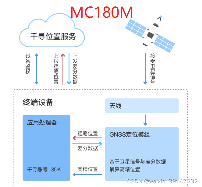 定位服务商(千寻)服务器向终端下发差分数据;